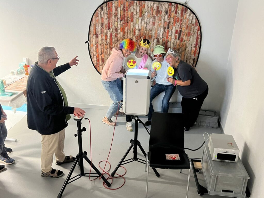 Die Fotobox sorgte für viele fröhliche Momente. Die Teilnehmenden konnten spontan in verschiedene Rollen schlüpfen, lustige Accessoires ausprobieren und kreative Erinnerungsfotos gestalten. Aus den Bildern entstand zudem eine bunte Collage, die den Workshop auf unterhaltsame Weise festhielt.